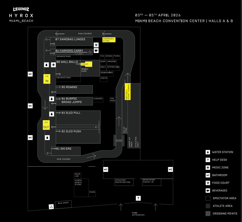 The official HYROX Miami Beach 2026 venue map will be added here as soon as it is released by HYROX.
